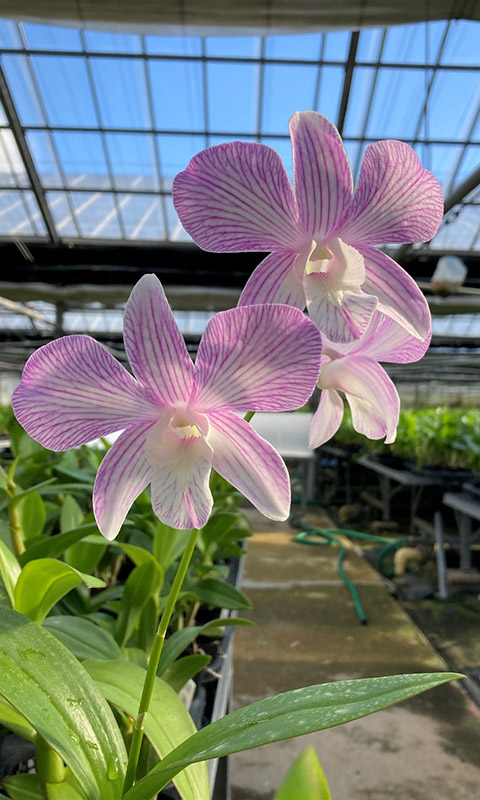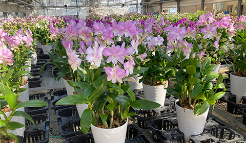 - デンファレを専門として30年以上が経ちました。現在、国内でデンファレを専門として栽培している洋蘭農家は数軒しかありません。輸入物とはひと味違う花持ちの良いデンファレをお届けできるよう日々一つ一つ真心こめて育てています。