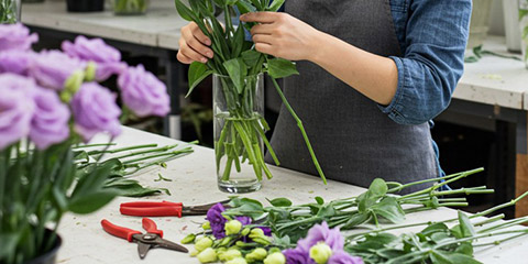 - 見落としのないよう、1輪ずつ人の目で検品しています。キズや変形、花の締まりなど、細部まで目を配り、手間を惜しまないことで信頼できる品質を保っています。